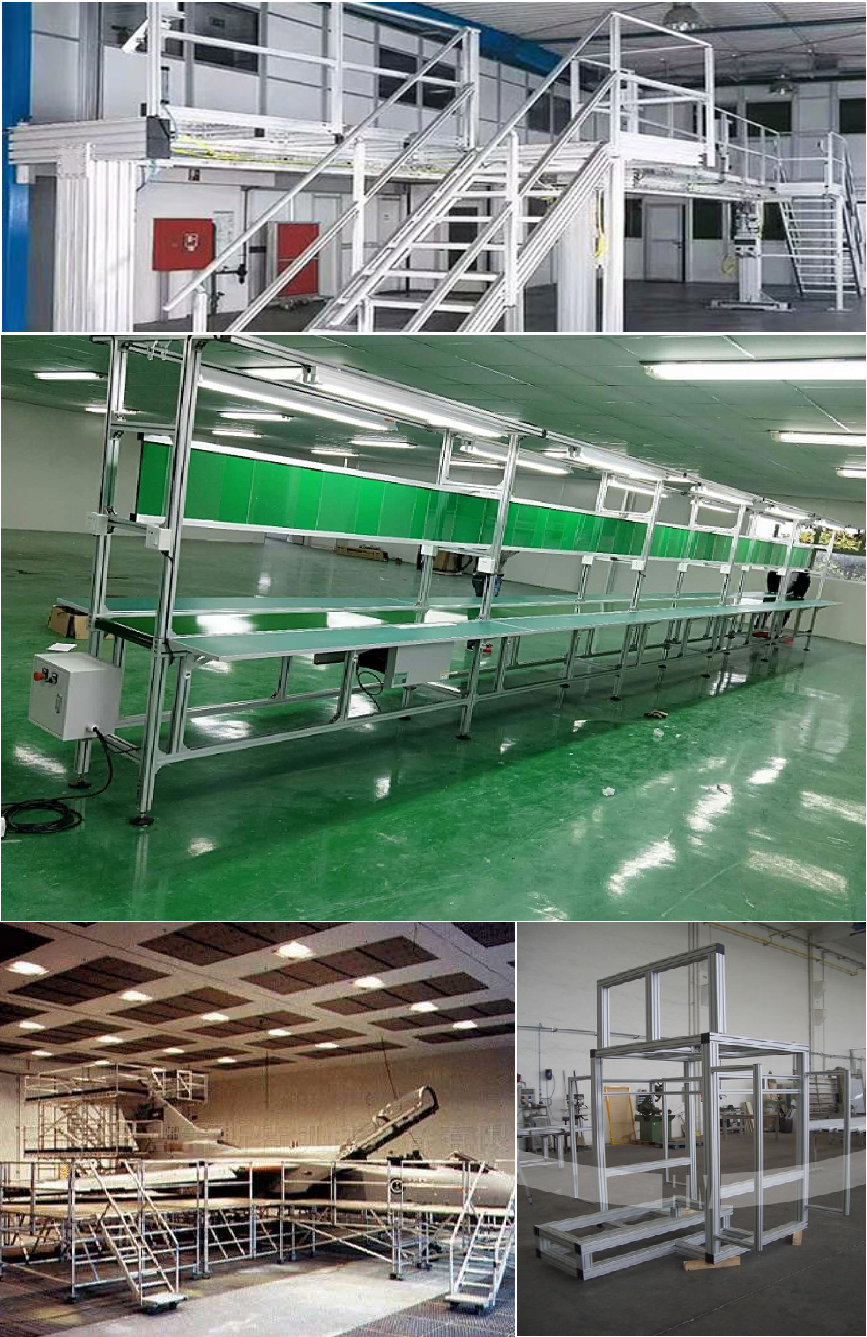 General industrial aluminum profiles: mainly used for industrial production and manufacturing, such as automation machinery and equipment, the framework of sealing cover and the customized mold opening of various companies according to their own mechanical equipment requirements, such as assembly line conveyor belt, elevator, dispensing machine, detection equipment, shelf, etc., the electronic machinery industry and dust-free room are mostly used.